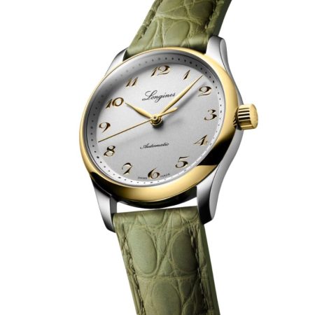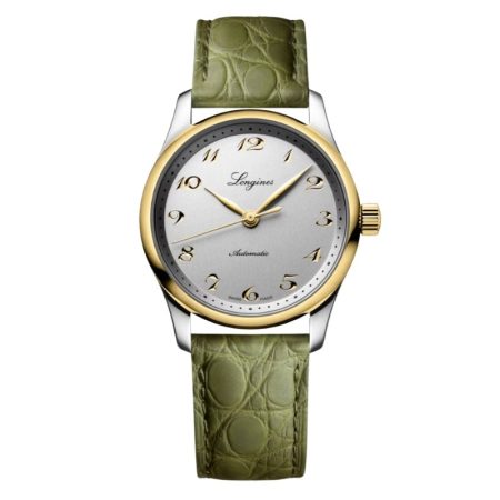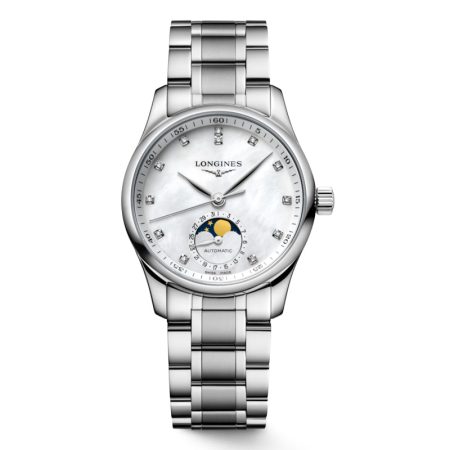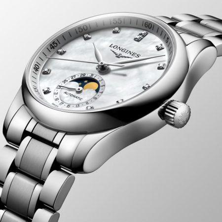 $3,400.00The Longines PrimaLuna is a sophisticated celebration of femininity, featuring a 34 mm round stainless steel case and a vivid green mother-of-pearl dial that captures light with a captivating glow. Diamond hour markers, set with 12 Top Wesselton VS-SI diamonds totaling 0.051 carats, add a refined sparkle, while silvered polished…